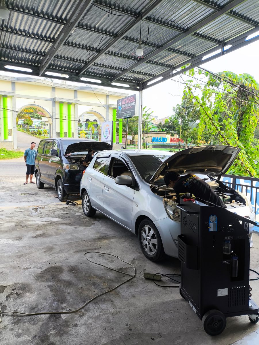 Menggunakan mesin flushing ac mobil yang dapat membersihkan oli pada sistem AC bisa mencapai hingga 100%. mesin lax ini juda menservice ac mobil tanpa bongkar.